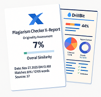 Turnitin, DrillBit, and PCX reports with similarity reduction.